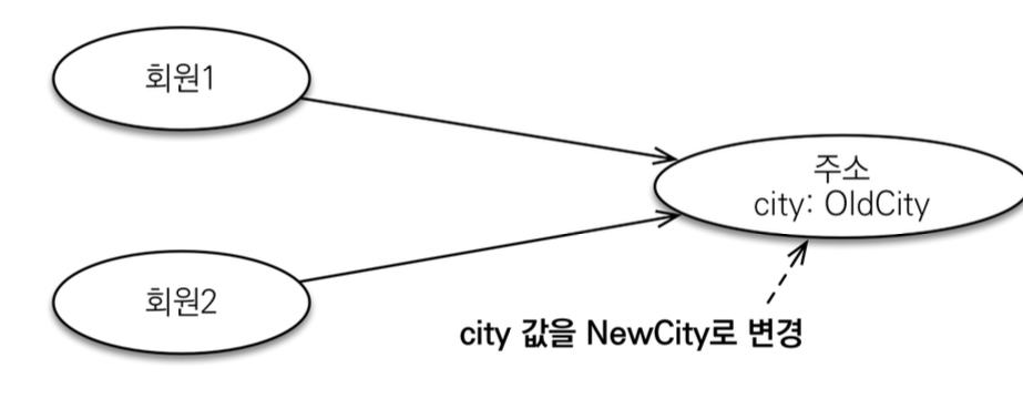 위와 같이 한쪽 회원의 city 값만 변경하고 싶어도 두 회원이 공유하고 있기 때문에 둘다 NewCity로 변경된다.