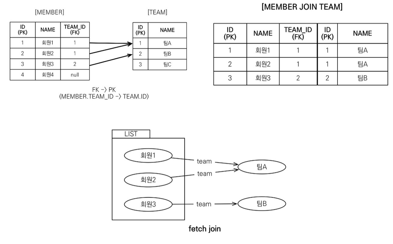 - 페치 조인은 객체 그래프를 SQL 한번에 조회하는 개념이다.
