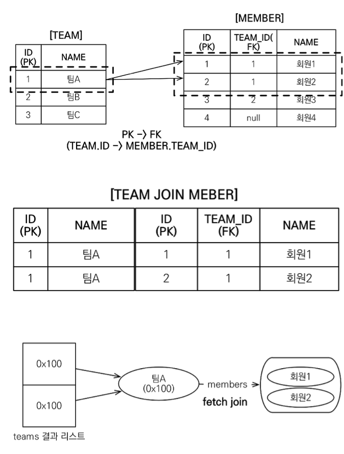 - 페치 조인은 객체 그래프를 SQL 한번에 조회하는 개념이다.