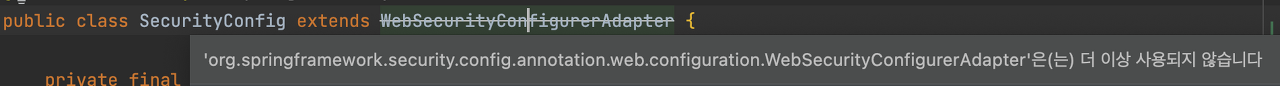 Spring Security로 로그인 기능 구현 당시 SecurityConfig 클래스를 WebSecurityConfigurerAdapter를 통해 Override하려고 했다. 그러나... 더 이상 사용되지 않는다고 한다... 어디로 가야하죠 아저씨... Deprecated 된 클래스가 처음인가요...
