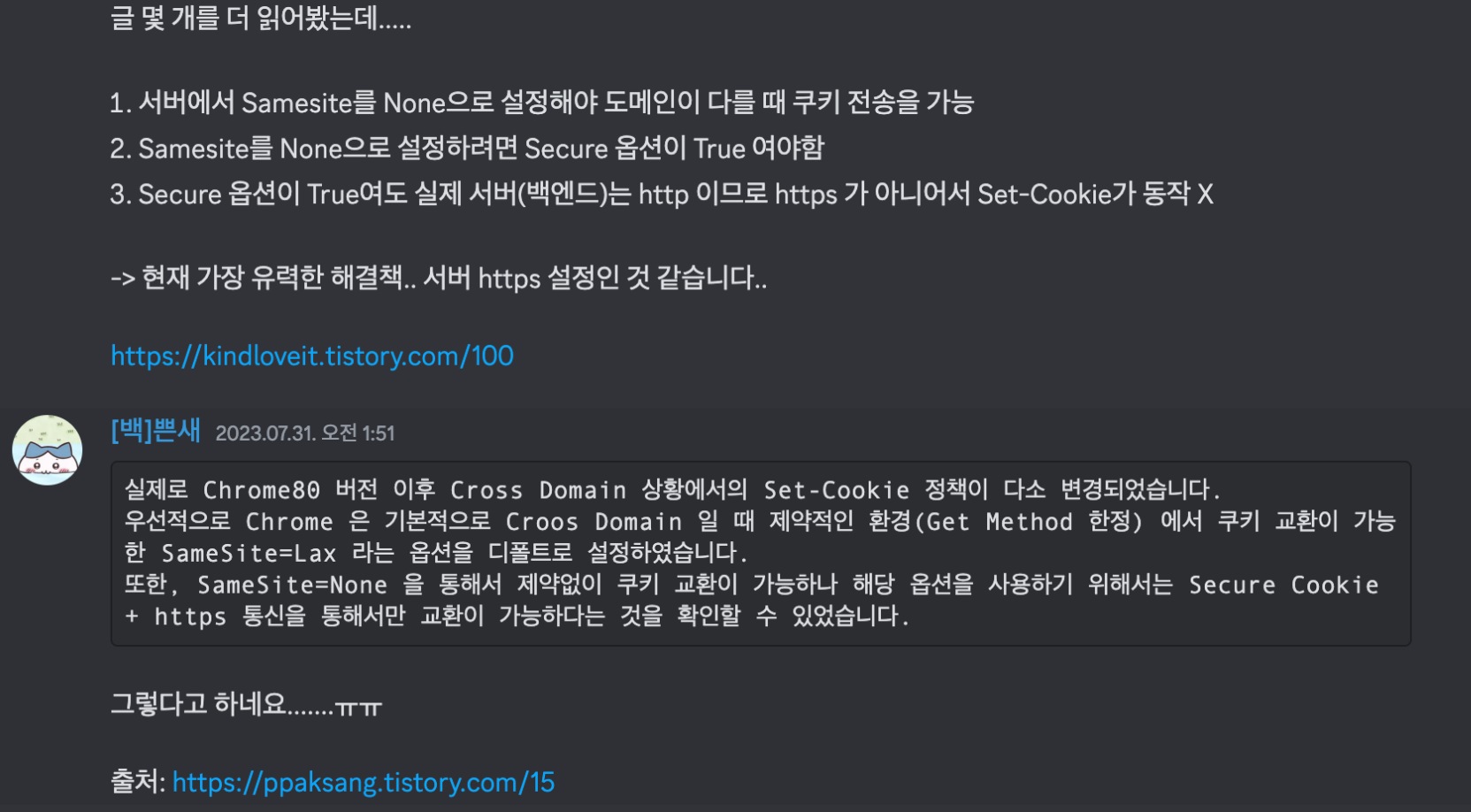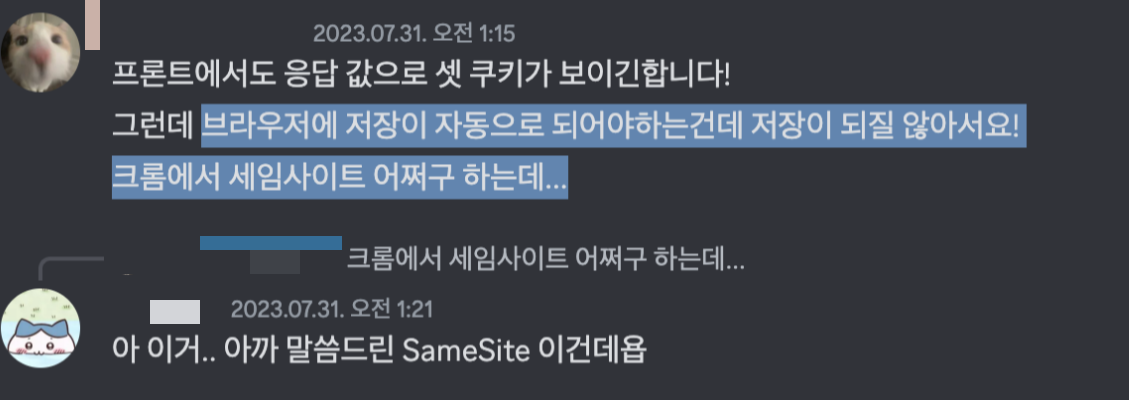 - Chrome80 버전 이후 Cross Domain 상황에서의 Set-Cookie 정책이 변경됨