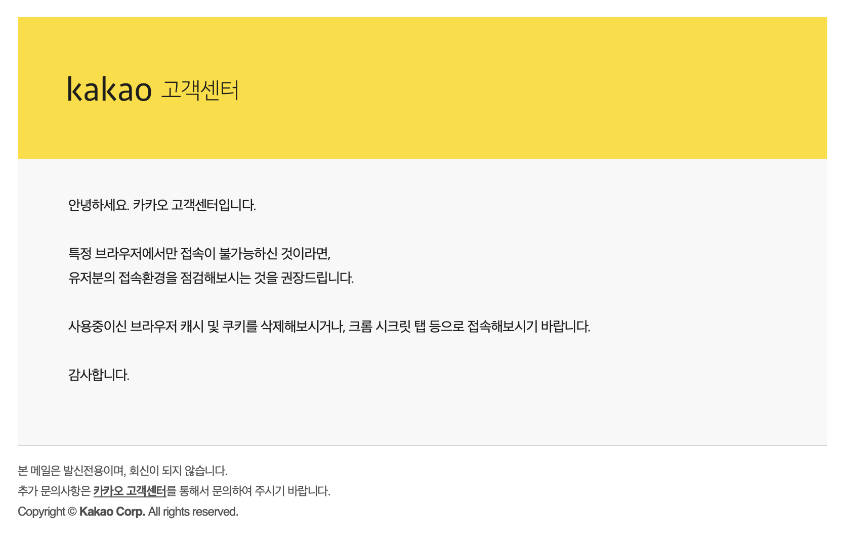 저번에도 카카오 로그인이 안됐던 이슈가 있어서 캐시를 비우고 로그인했더니 잘됐었다.