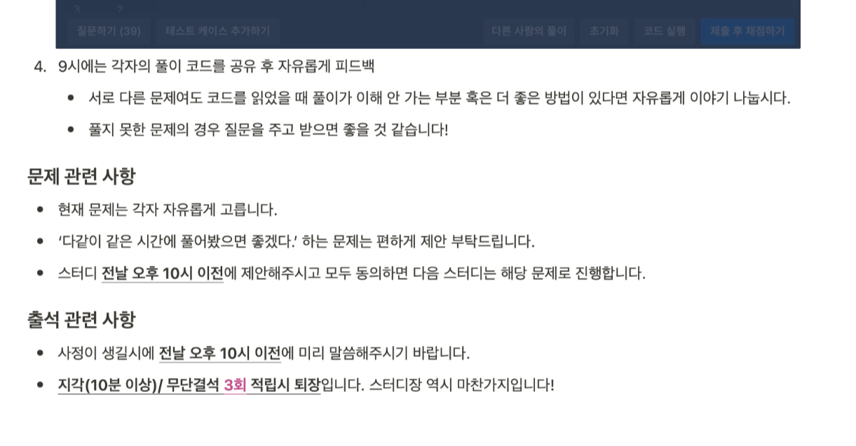 이제야 눈에 보이지만 오랜만에 직접 모집해보는 스터디라 부족함도 있었다.