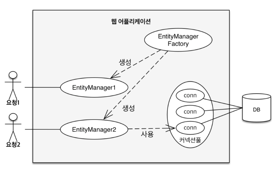 //엔티티 매니저는 데이터 변경시 트랜잭션을 시작해야 한다.
