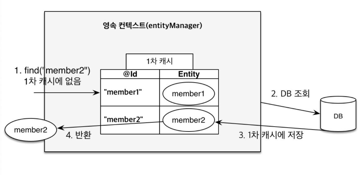 엔티티를 엔티티 매니저를 통해서 영속성 컨텍스트에 접근한다.