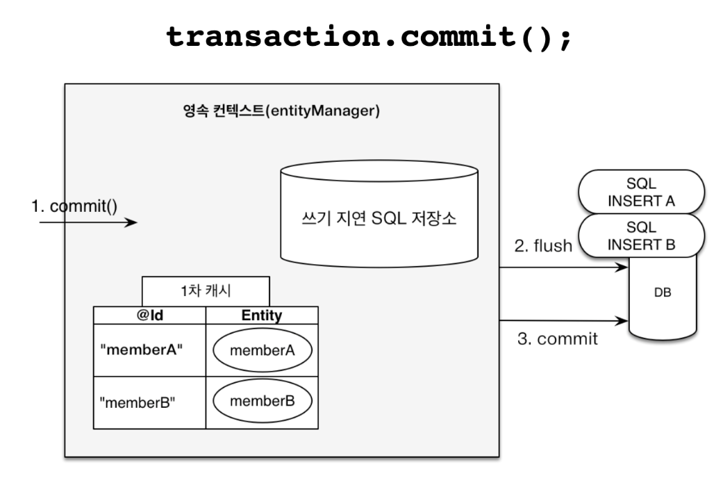 //커밋하는 순간 데이터베이스에 INSERT SQL을 보낸다.